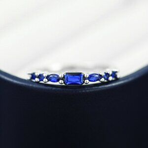 "Tiny Rectangular Bright Royal Blue Shiny Zircon Trendy Ring for Women, PD685