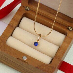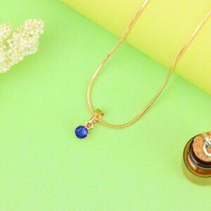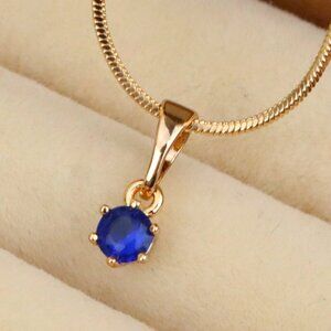 "Tiny Round Blue Pendant in Gold Finish for Delicate Everyday Style, XPPT1657