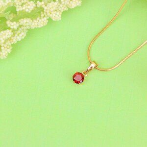"Tiny Round Red Stone Rose Gold Pendant – Minimalist Design, XPPT1600