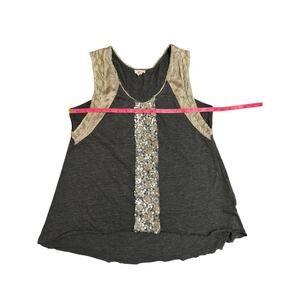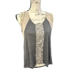 Tiny Sequin & Lace Mixed Media Tank Top Gray Beige – Size M