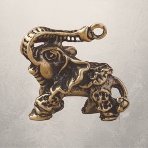 Tiny Solid Brass African Elephant with Nose Facing Up - Means Good Luck