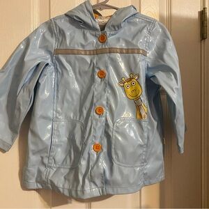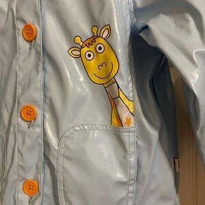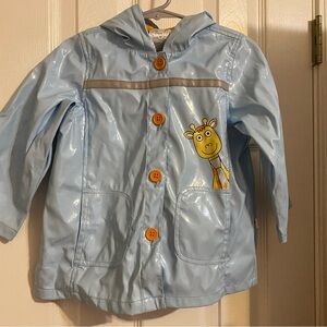 Tiny Tallia Hooded Raincoat Baby blue button front raincoat with hood Cute giraffe on front One one time Size 4T Smoke free home