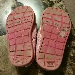 Paint splatter toms. Bubblegum pink with yellow and lavendar paint splatters. Worn only a couple of times because my daughter outgrew them too fast.