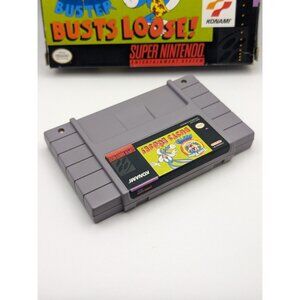 Take a trip down memory lane with this Tiny Toon Adventures: Buster Busts Loose! video game for the SNES. Enjoy all the action and adventure of this classic game that was released in 1993. The game is in its original form and comes with the box and a clear protector (no manual included).