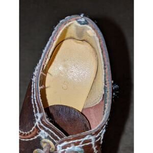 This is an adorable, classic toddler boy sz. 5 brown lace vintage style dress shoe. Adorable, great quality and definite classic, traditional, old school styling. Normal signs of typical, gentle wear including some minor fraying on one of the lace ends, but otherwise adorable pair. Great for any occasion.