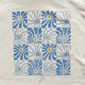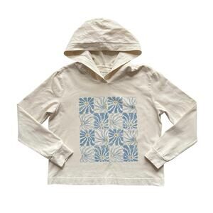 Tiny Whales cropped hoodie top. Cream with checkered floral graphic. 95% cotton, 5% spandex. In new condition. Retails for $48.50.