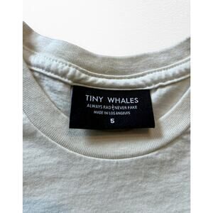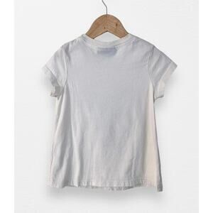 Off white tee from Tiny Whales in size 5. Features cap sleeves and a houseplant graphic that says “Never stop growing”. VGUC, light wash wear only.