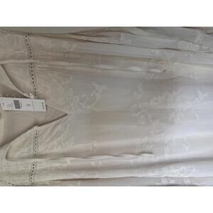 Brand new with tags, Tiny by Anthropologie ivory embroidered dress in a size Medium. Originally retailed for $148. This breezy, romantic piece features delicate floral embroidery, sheer long sleeves, and a relaxed, boho-inspired silhouette.