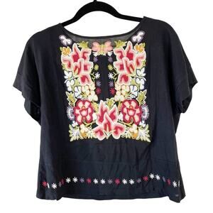 Tiny for Anthropologie Floral Embroidery Top Size Small