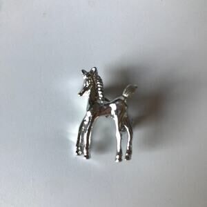 Tiny horse pin, silver tone baby colt pin, brooch