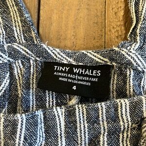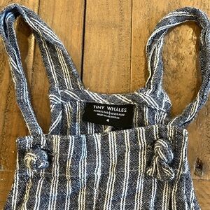 Tiny whales navy pinstripe shortalls