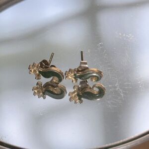 Tiny Enamel Painted Green & Gold Tone Seahorse Post Earrings