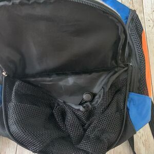 Great for boys or girls! This Tiny Tykes soccer themed backpack is super cool with a smiley lion and bright colors. Orange, yellow, white, navy blue and black with adjustable padded straps and a top handle grip make this backpack really fun. 5 zippered compartments and a large slip pocket inside gives your aspiring sports enthusiast lots of storage!
