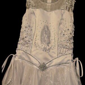 Tip Top Kids Quinceañera Dress Virgin Mary Sz 14 White Embroidery Rhinestones