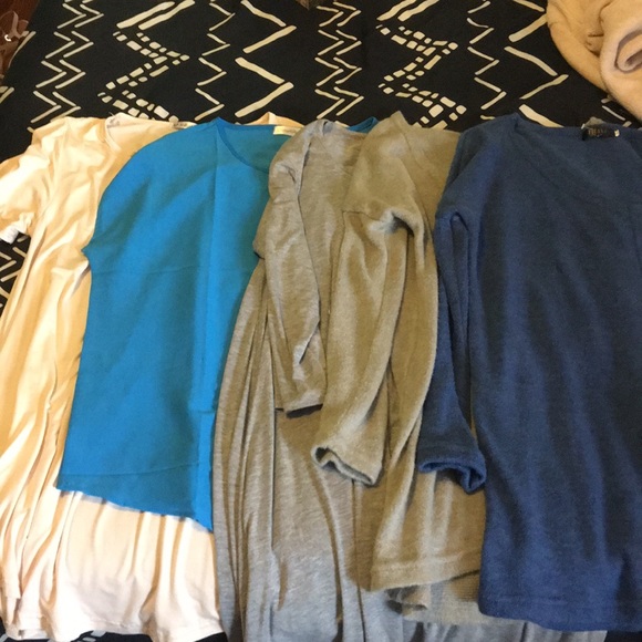 3 tunic shirts I bought that were a little big so never worn, then two sweaters same problem. Normally in between a small and medium these are more definite medium. All bought off amazon.
