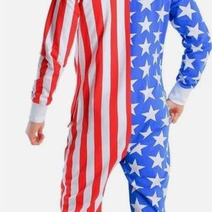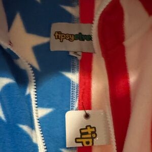Tipsy Elves Americana America Red White Blue Stars Stripes Onesie fleece pj lg