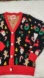 Vibrant cardigan with playful holiday designs. Features gingerbread men, Santa hats, and candy canes. Perfect for festive occasions, Size L, Please check the pictures.