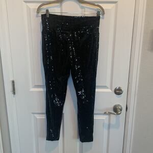 Tipsy Elves Black Sequin Halloween Costume Dance Pocket Leggings Sz M #53