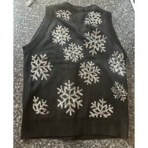 Tipsy Elves Black Sweater Vest w/Sequin Snowflakes