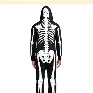 Fun skeleton jumpsuit by Tipsy Elves. Black base with white skeleton design. Comfortable and stylish.