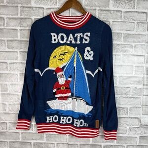 Tipsy Elves Boats & Ho Ho Ho Christmas Ugly Sweater Pullover Crewneck Mens SMALL