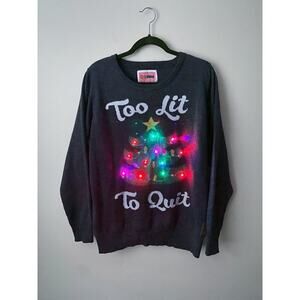 Tipsy Elves Gray Too Lit Light Up Ugly Christmas Sweater Women's Size Large EUC