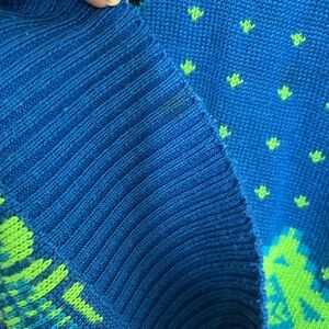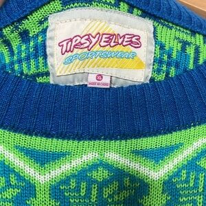 Tipsy Elves Green Blue Knit Alpine Skier Snowflake Ugly Sweater Women Size XL