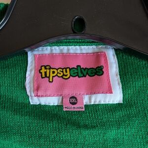 Tipsy Elves Green and Red Cardigan with Festive Decorations