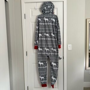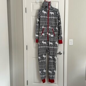 Tipsy Elves Men's Grey Moose Fair Isle Christmas Onesie Jumpsuit Size XS - NWOT