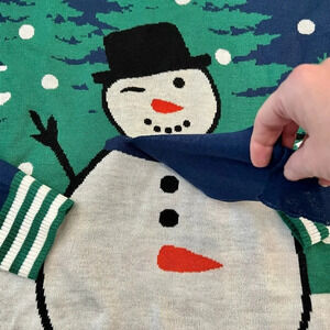* Excellent used condition men's Tipsy Elves Peekaboo Ugly Christmas Sweater with a surprise under the the snowman's scarf. No stains or flaws.
