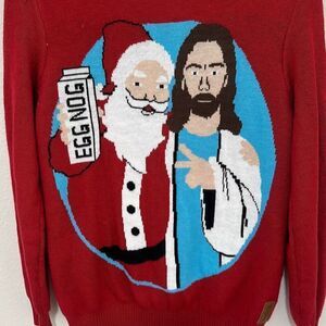 Tipsy Elves Mens Red Jesus Santa Ugly Santa Christmas Sweater Size Medium