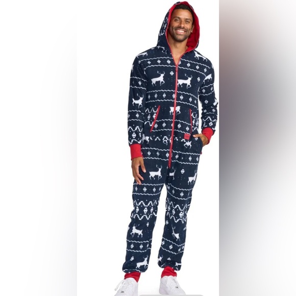 Tipsy Elves Men’s Reindeer Sweatshirt Jumpsuit SZ M Navy Red White