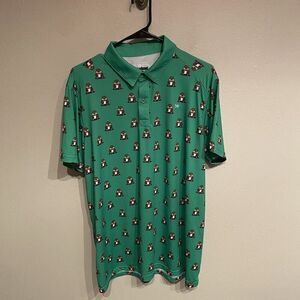 Tipsy Elves Mens Size Large Golf Polo Groundhog Print Pattern Green