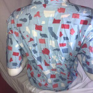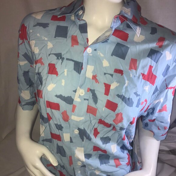 Tipsy Elves Mens USA American States Patterned Light Blue Button Up Size XL