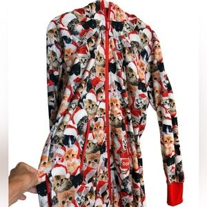 New with Tags, Meowy Catmus fleece jumpsuit is loaded with adorable kittens in a novelty Christmas print. Super soft.