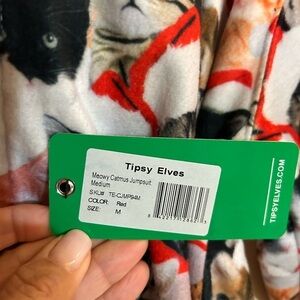 Tipsy Elves Meowy Catmus Jumpsuit Kittens Fleece Christmas Onesie Size Med NWT