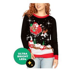 Tipsy Elves Meowy Christmas Sleigh Light Up Ugly Christmas Sweater Blue Red Knit