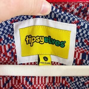 Tipsy Elves Navy & Red Fair Isle Christmas Cardigan Sweater Men's Size Large EUC