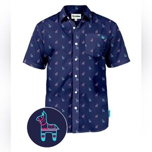 Tipsy Elves Neon Piñata Hawaiian Shirt - Size M - Navy Blue - NWOT