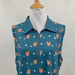 Tipsy Elves Polo Shirt Womens XL Extra Large Squirrel Playing Golf Sleeveless
