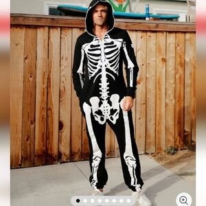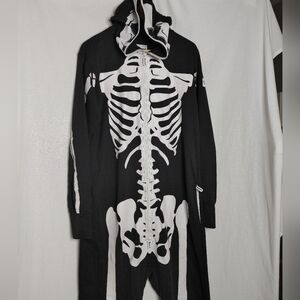 Tipsy Elves Skeleton Costume Jumpsuit Full Zip Black White Large L Unisex Pajama