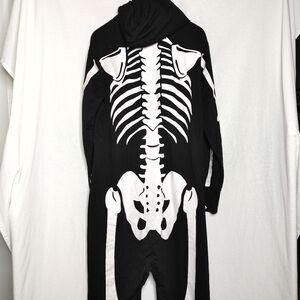 Tipsy Elves Skeleton Costume Jumpsuit Full Zip Black White Large L Unisex Pajama