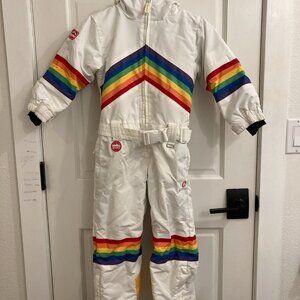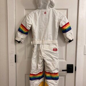 Don't let the cold get your little one down. If you want them to play in the snow and have a great time, but you're worried about them getting cold. Then the Sunrise Shredder Snow Suit is your answer! With its white color and rainbow stripes, this snow suit will let you enjoy any winter activity without worrying about catching a chill.
