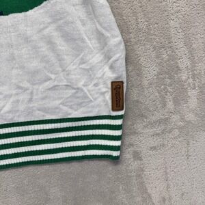 A Tipsy Elves sweater featuring a festive and fun design. This long-sleeved knit sweater showcases a playful snowman graphic with Christmas trees and snowflakes, perfect for holiday gatherings. It has a crew neck with striped detailing on the collar, cuffs, and hem. The sweater is designed with a comfortable fit and a novelty aesthetic, making it a standout piece for the holiday season.