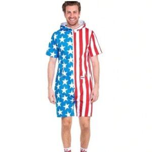 Tipsy Elves USA Patriotic Medium Unisex Romper Jumpsuit Shorts Flag