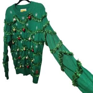 Tipsy Elves Ugly CHRISTMAS TREE SWEATER GARLAND OVERSIZED Women's XL