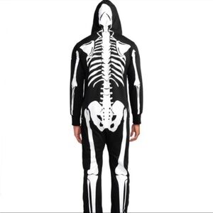 Stand out with this striking skeleton print jumpsuit. Perfect for themed events or a unique fashion statement, this black and white outfit combines comfort with style.