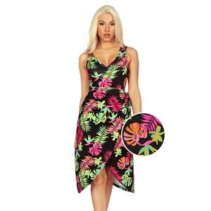 🌺 Tipsy Elves Vibrant Vibes Midi Dress Colorful Tropical Vacation Dress M NEW