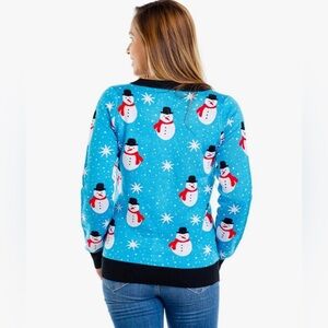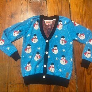 Tipsy Elves WOMEN'S SNAZZY SNOWMAN CARDIGAN SWEATER Size L Light Blue Holiday