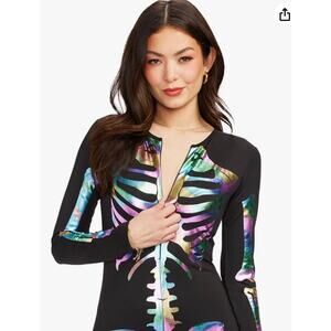 Tipsy Elves Wm's Iridescent Skeleton Bodysuit Hood Halloween Costume Sz M